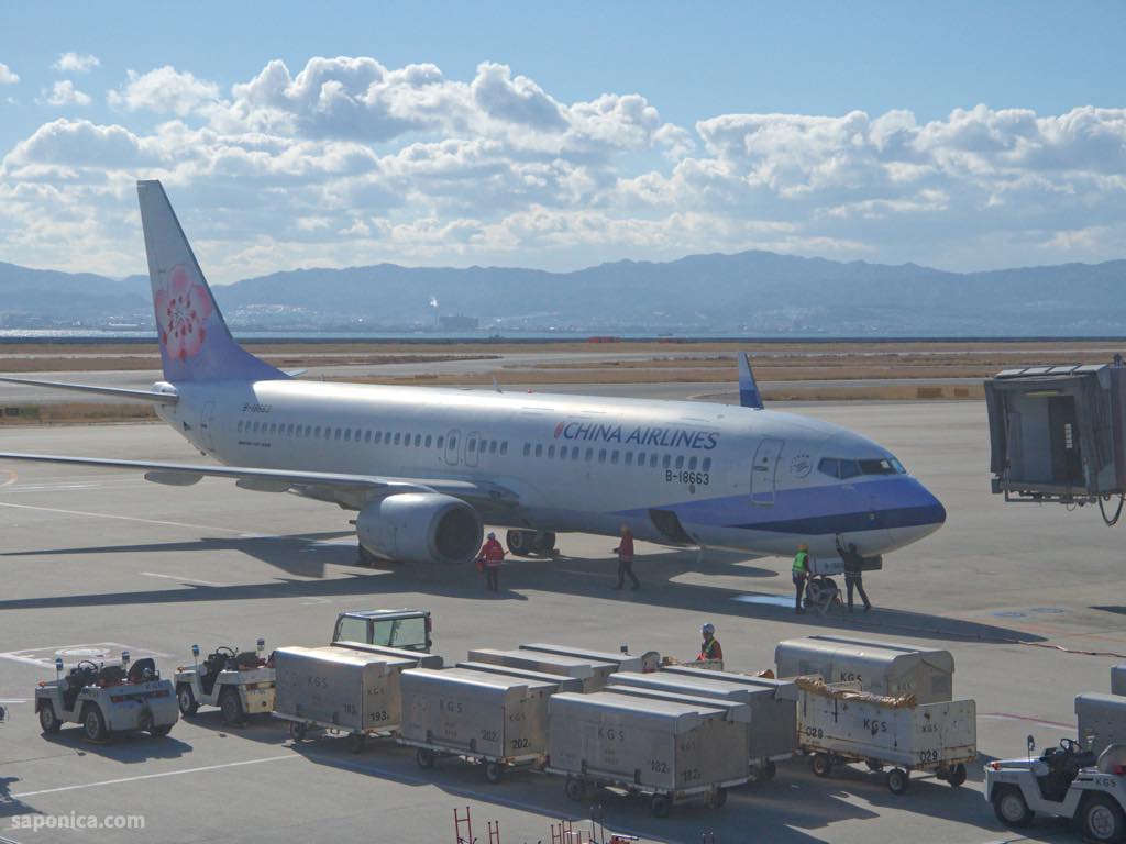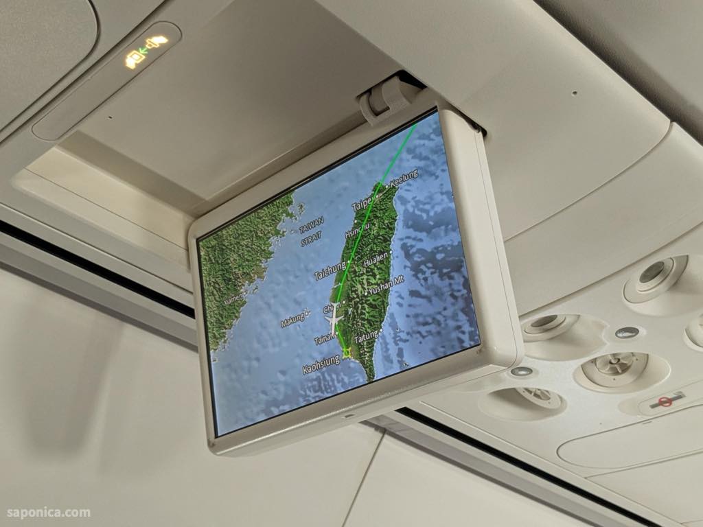 今回利用したのはチャイナエアライン。往路は座席が左右3×3列、小さめで少し古めの機体。モニターは頭上に付いたみんなでシェアするタイプ。昔乗った関空発台北行きのチャイナエアは2-4-2で個別モニター付きの機体だったけど…高雄行きだからかな。好きな映画見たかったな。