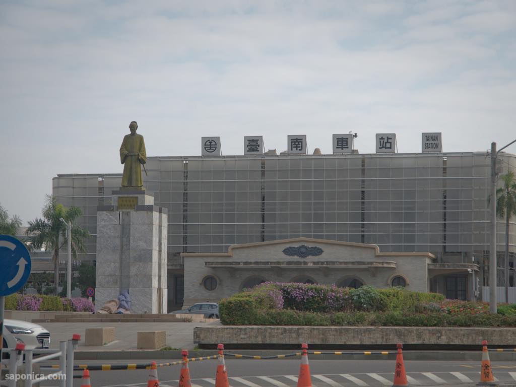 台南駅に到着。出口を出たところで、この駅舎ずいぶん簡素な建物だなぁ…と思ったんですが、どうやら改修工事中だったみたい。離れてみるとシートで覆われてるのがわかる。